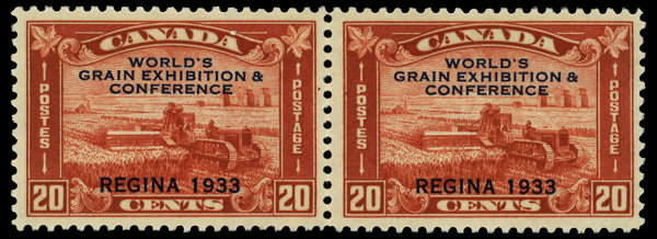 8916 og 203 image1933, 20¢ Grain Exhibition, broken 'X' variety (Scott 203), pair (variety is right stamp), o.g., lightly hinged, Very Fine.