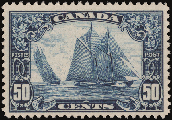 8892 nh 158 image1929, 50¢ Bluenose (Scott 158), o.g., never hinged, fresh and well centered, Very Fine.