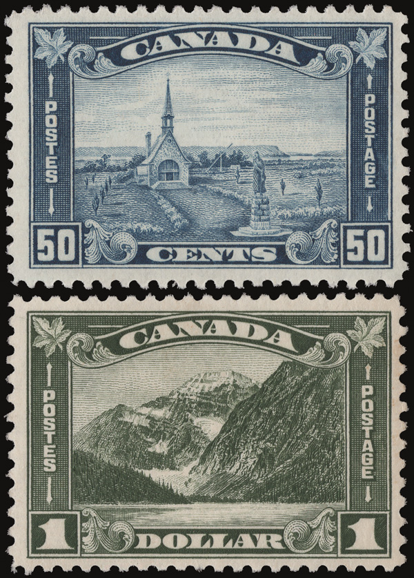 8906 nh 176-177 image1930, 50¢ 50¢ Grand Pré & $1 Mt. Cavell (Scott 176-177), o.g., never hinged, fresh and nicely centered, Very Fine.