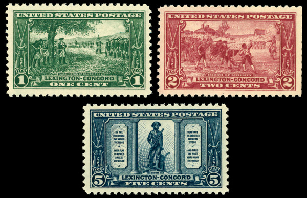 8213 nh 617-619 image1925, Lexington-Concord complete (Scott 617-619), set of 3, o.g., never hinged, Extremely Fine.