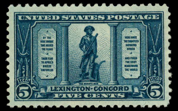 8215 nh 619 image1925, 5¢ Lexington-Concord (Scott 619), o.g., never hinged, Extremely Fine.