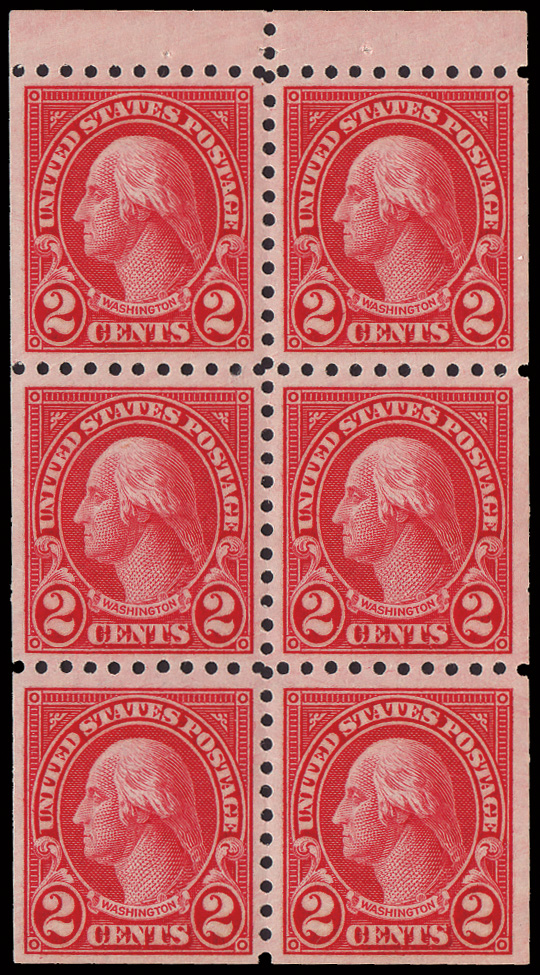 8202 BKnh 583a image1924, 2¢ Washington, rotary press printing, booklet pane of 6 (Scott 583a), an extraordinary pane, o.g., never hinged, post office fresh and incredibly well centered, Superb. As close to perfection a you'll find!