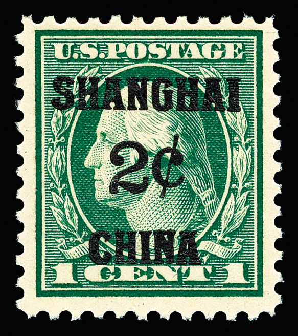 8350 nh K1 imageOffices in China, 1919, 2¢ on 1¢ green (Scott K1), Balanced centering, o.g., never hinged, Very Fine to Extremely Fine.