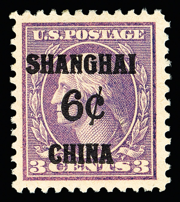 8353 og K3 imageOffices in China, 1919, 6¢ on 3¢ violet (Scott K3), Harmonious margins, o.g., previously hinged, Very Fine to Extremely Fine.