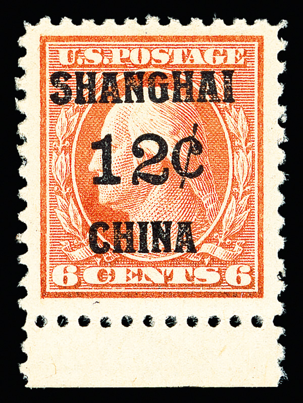 8359 nh K6 imageOffices in China, 1919, 12¢ on 6¢ red orange (Scott K6), Intense color, o.g., never hinged, Very Fine to Extremely Fine massive margins.