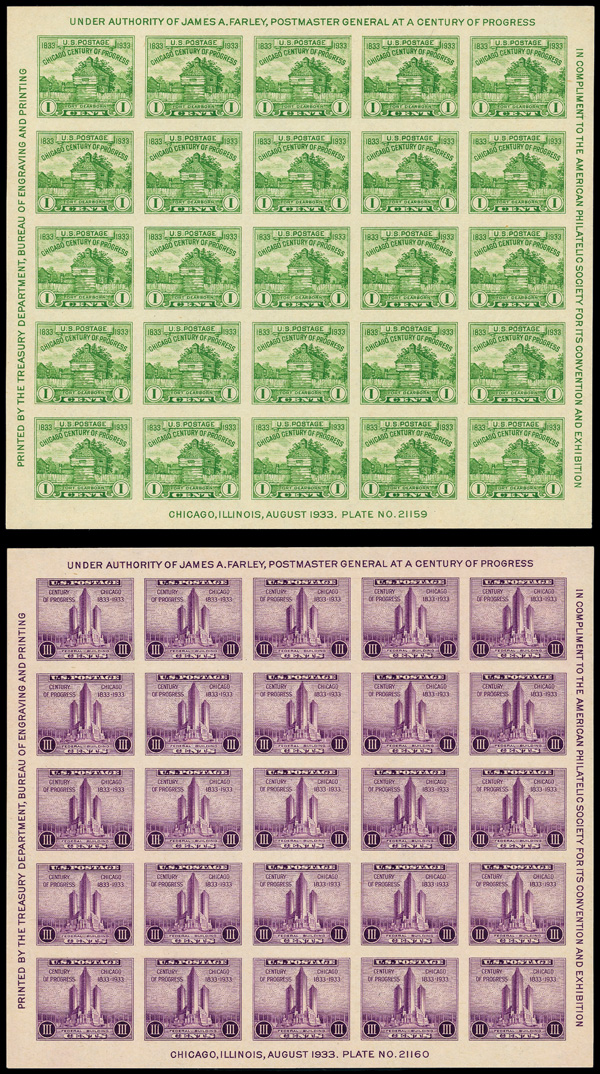 5417 ng 730-731 image1933, A.P.S. souvenir sheets complete (Scott 730-731), without gum as issued, Very Fine.