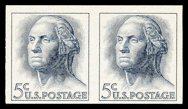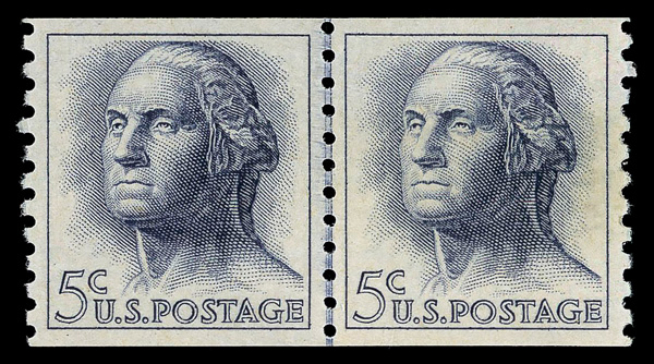 5700 nh 1229b image1962, 5¢ Washington, horizontal coil, imperf. pair (Scott 1229b), o.g., never hinged, Fine to Very Fine, only about 50 pairs reported.