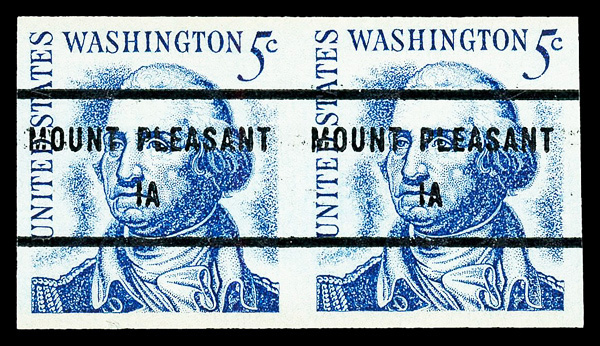 5709 nh 1304e image1966, 5¢ Washington, horizontal coil, imperf. pair, untagged (Bureau precanceled) (Scott 1304e), 'MOUNT PLEASANT/IA' precancel, o.g., never hinged (faint fingerprint on gum), Very Fine to Extremely Fine.
