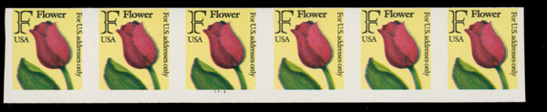 5720 nh 2518a image1991 (29¢) "F" Tulip, horizontal coil, pair (Scott 2518a), plate #1111, o.g., never hinged, Fine.