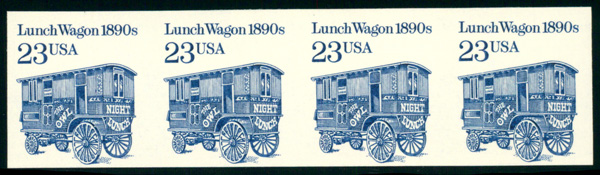 5718 nh 2464b image1991, Transportation Issue, 23¢ Lunch Wagon, prephosphored coated paper, imperf. pair (Scott 2464b), o.g., never hinged, Fine.