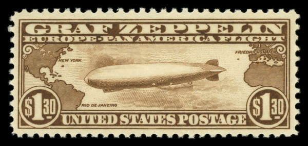 5734 og C14 imageAirmail, 1930, $1.30 Graf Zeppelin (Scott C14), o.g., lightly hinged, Very Fine.