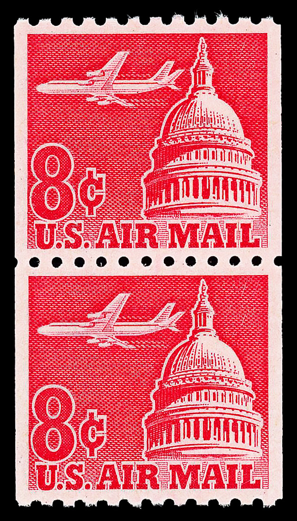 5753 nh C82a imageAirmail, 1971, 11¢ Jet coil, imperf. pair (Scott C82a), o.g., never hinged, Very Fine, less than 200 pairs issued.