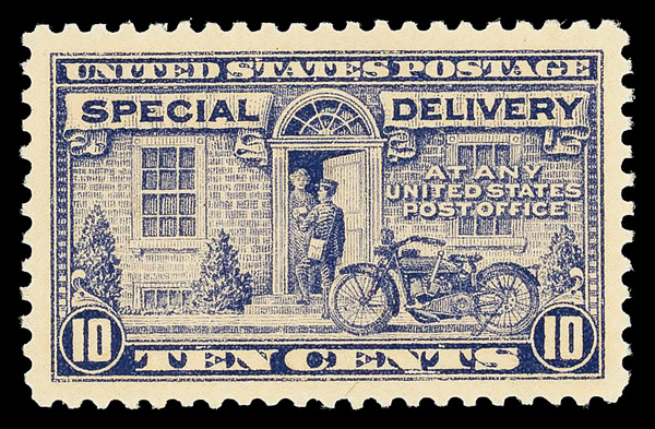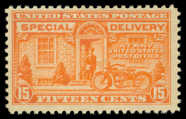 5760 nh E13 imageSpecial Delivery, 1925, 15¢ deep orange (Scott E13), plate number single, o.g., never hinged (gum crease), Fine.