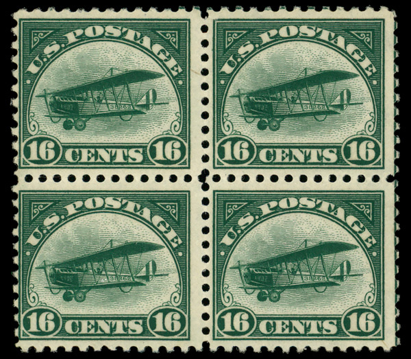 5725 nhbl C2 imageAirmail, 1918, 16¢ green (Scott C2), block of 4, o.g., never hinged, Fine.