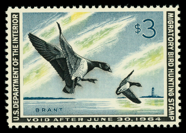 5865 nh RW30 imageFederal Duck Stamp, 1963, $3 Brants (Scott RW30), o.g., never hinged, Extremely Fine.