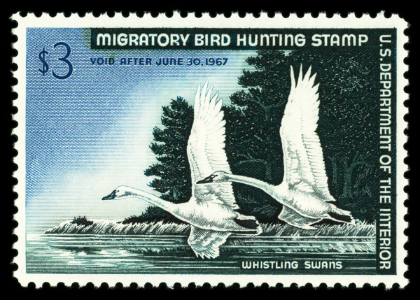 5868 nh RW33 imageFederal Duck Stamp, 1966, $3 Whistling Swans (Scott RW33), o.g., never hinged, Extremely Fine.