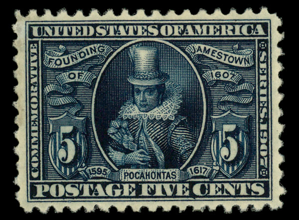 5175 og 330 image1907, 5¢ Jamestown (Scott 330), o.g., lightly hinged, Extremely Fine.