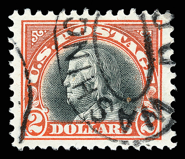 5298 O 523 image1918, $2 orange red & black (Scott 523), fresh on sound, bright paper, beautifully centered with "Washington/DC" double-oval cancel, Extremely Fine.