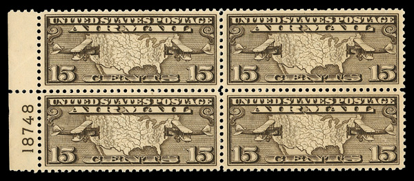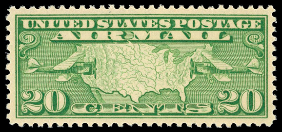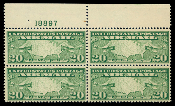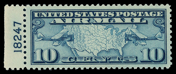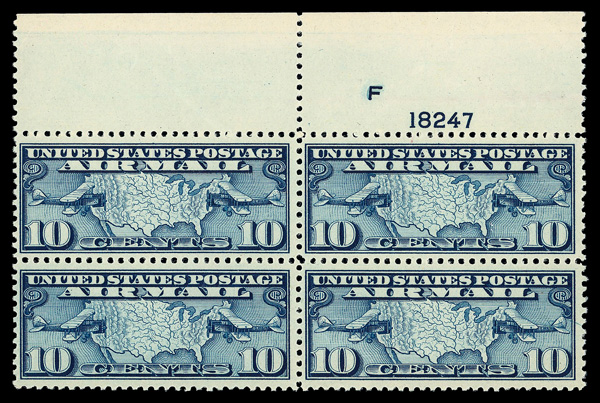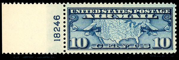 7556 og C7 imageAirmail, 1926, 10¢ Map & Planes (Scott C7), plate number single, o.g., very lightly hinged, Extremely Fine. (Image) Suggested Bid $10