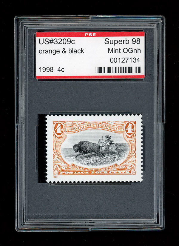 7539 nh 3209c image1998, 4¢ Trans-Mississippi, single from souvenir sheet (Scott 3209c), o.g., never hinged, Superb no SMQ price, with P.S.E. encapsulated certificate graded SUP 98. (Image) Suggested Bid $100