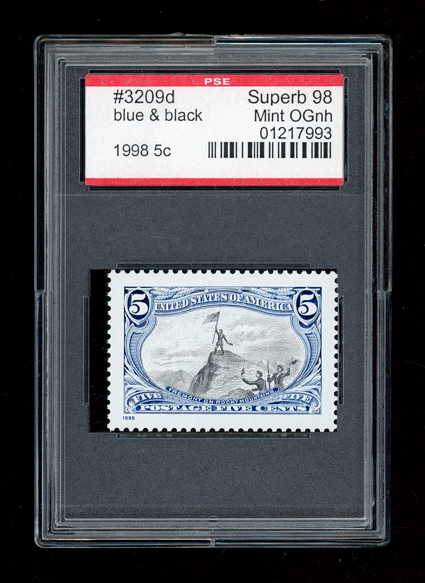 7540 nh 3209d image1998, 5¢ Trans-Mississippi, single from souvenir sheet (Scott 3209d), o.g., never hinged, Superb no SMQ price, with P.S.E. encapsulated certificate graded SUP 98. (Image) Suggested Bid $100