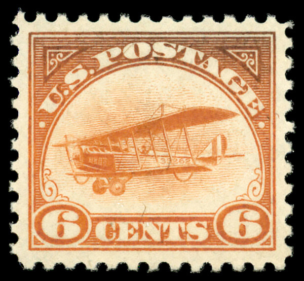 7547 nh C1 imageAirmail, 1918, 6¢ orange (Scott C1), o.g., never hinged (gum bends), Extremely Fine.
