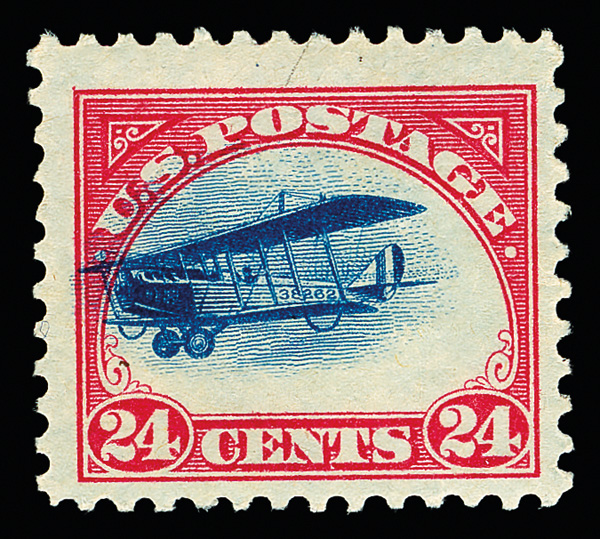 7549 og C3 imageAirmail, 1918, 24¢ carmine rose & blue (Scott C3), Beautifully fresh, fast plane variety, huge jumbo margins, o.g., previously hinged, Very Fine to Extremely Fine.