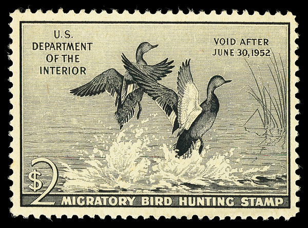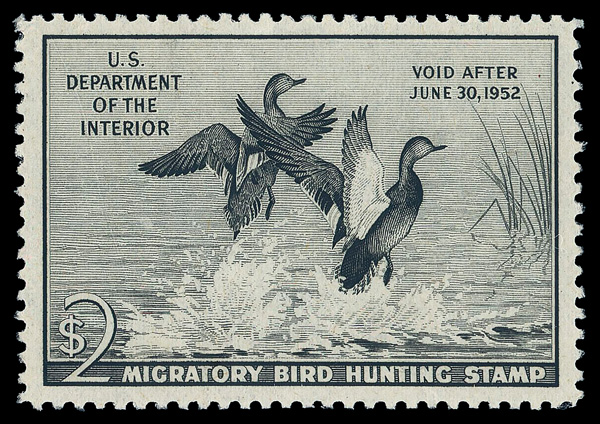 7690 og RW18 imageFederal Duck Stamp, 1951, $2 Gadwall Ducks (Scott RW18), o.g., lightly hinged, Extremely Fine to Superb.