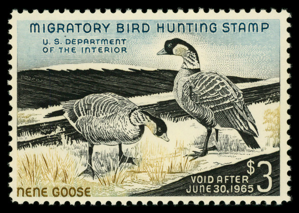 7711 nh RW31 imageFederal Duck Stamp, 1964, $3 Nene Geese (Scott RW31), o.g., never hinged, Fine to Very Fine.
