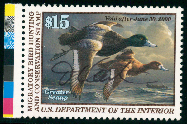 7737 nh RW66 imageFederal Duck Stamp, 1999, $15 Greater Scaup (Scott RW66), artist signed, o.g., never hinged, Extremely Fine to Superb. (Image) Suggested Bid $18