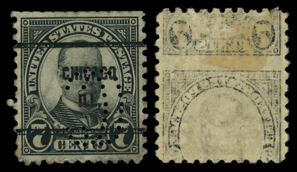 7755 og 588 var. image1926, 7¢ McKinley, rotary press printing, perf. 10, offset impression (Scott 588 var.), single, reverse impression on the reverse on the gum, o.g., hinged, Fine to Very Fine. (Image) Suggested Bid $10