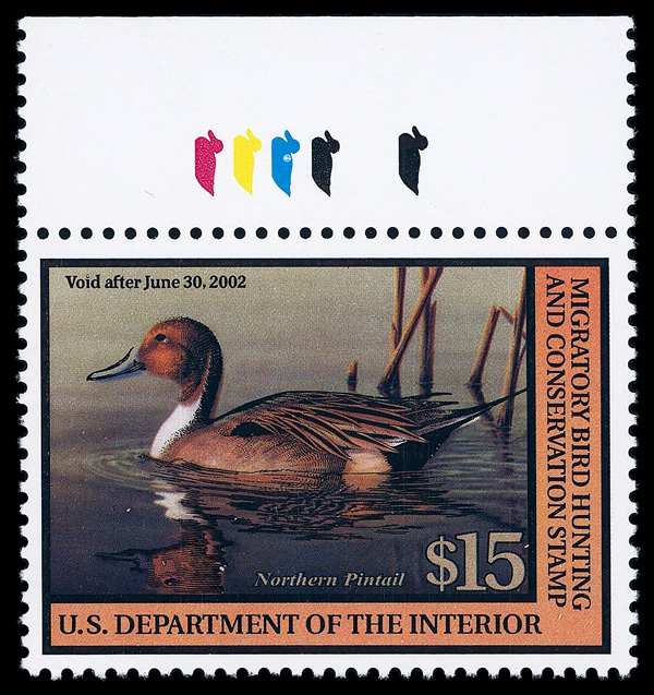 7739 nh RW68 imageFederal Duck Stamp, 2001, $15 Northern Pintail (Scott RW68), o.g., never hinged, Very Fine.