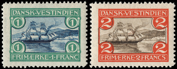 7799 nh 37-39 image1905, St. Thomas Harbor, 1fr-5fr high values (Scott 37-39), o.g., never hinged, bright and fresh, Extremely Fine.
