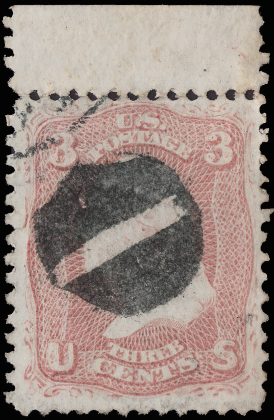7821 O FR-M1a 11 imageNegative Masonic Square & Compass of Quincy, Mass. (Skinner-Eno FR-M1a 11), clear, almost complete strike on a Fine 3¢ rose (65). (Image) Suggested Bid $19