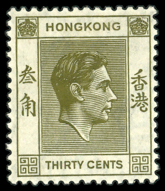 7827 og 161 image1938, King George VI, 30¢ yellow olive, perf 14 (Scott 161), single, o.g., hinged, Fine to Very Fine.