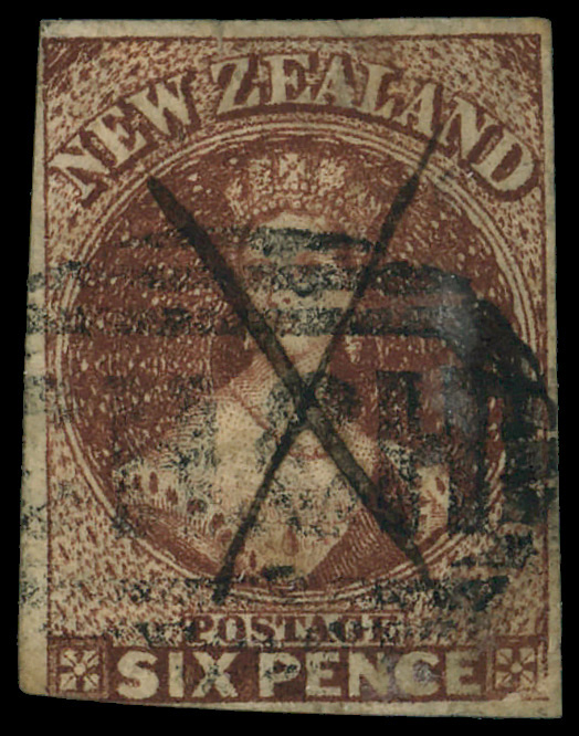 7830 O 14 image1862, Queen Victoria "Chalon Head", 6d red brown, imperf (Scott 14), Large Star watermark, Fine.