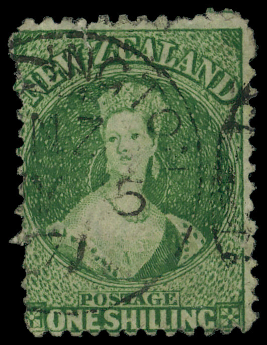7834 O 37 image1864, Queen Victoria "Chalon Head", 1s pale yellow green, perf 12½ (Scott 37), Large Star watermark; small tear at left, Fine.