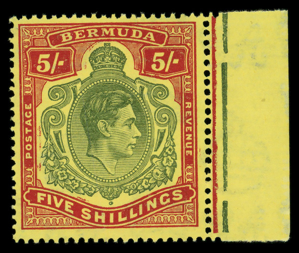7825 nh 125 var. image1945, King George VI, 5s green & red on yellow (Scott 125 var.), o.g., never hinged, Fine to Very Fine.