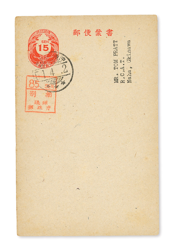 7818 O UX4b imagePostal Card, 1951, 15s+85s orange red on gray (Scott UX4b), Very Fine.