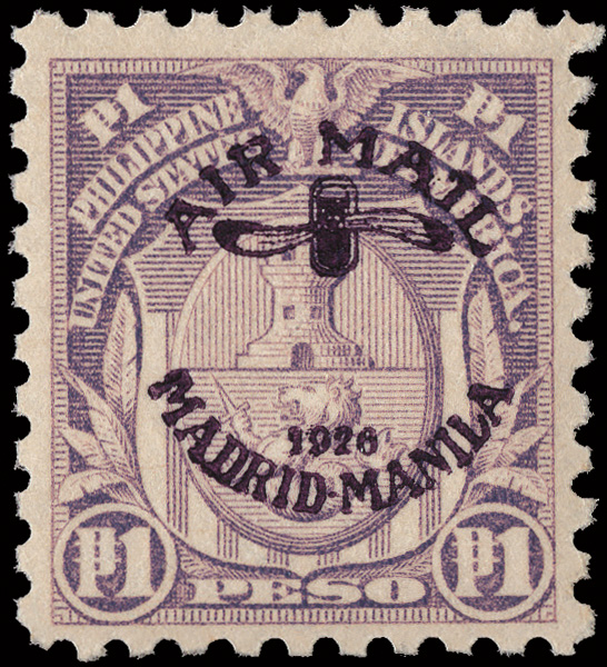7814 og C17 imageAirmail, 1926, 1p Madrid-Manila Flight (Scott C17), o.g., lightly hinged, bright and fresh, Fine to Very Fine.