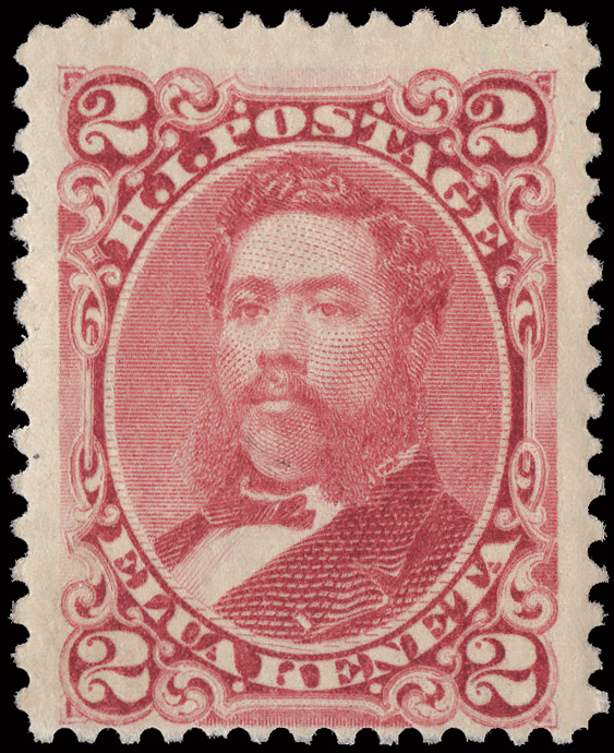 7804 nh 38 image1882, King David Kalakaua, 2¢ lilac rose (Scott 38), o.g., never hinged, exceptionally fresh, Fine to Very Fine.