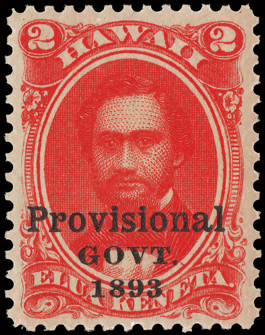 7807 nh 65 image1893, Provisional Govt., 2¢ rose vermilion, black overprint (Scott 65), o.g., never hinged, exceptionally bright, fresh and well centered, Very Fine to Extremely Fine.