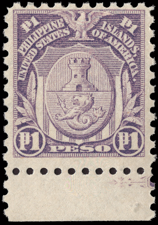 7811 nh 284 image1914, 1p pale violet (Scott 284), bottom sheet margin single, o.g., never hinged, fresh and Fine.