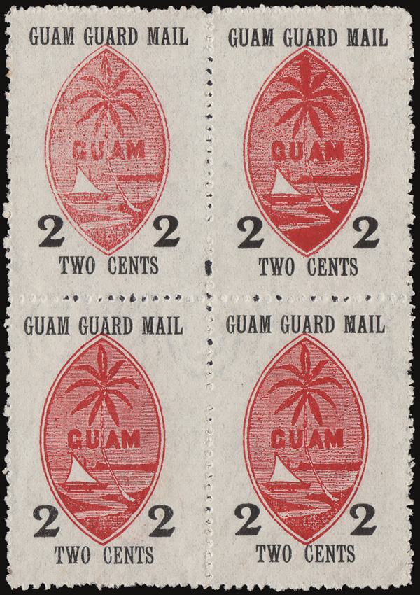 7802 ngbl M4 imageGuard Mail, 1930, 2¢ black & red (Scott M4), a choice block of 4 with clear "(CLEVELAN)D BOND" watermark across the middle, without gum as issued, Extremely Fine.