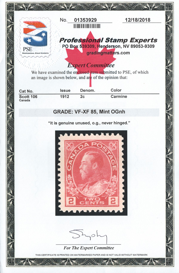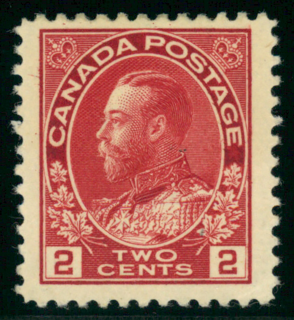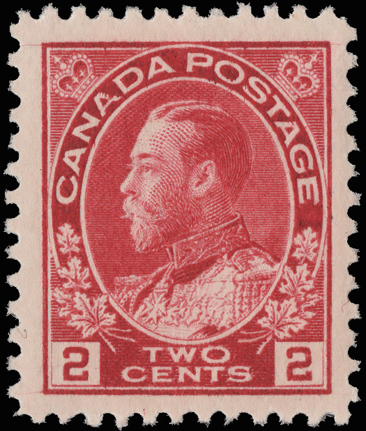 7876 nh 106 image1912, King George V "Admiral", 2¢ carmine (Scott 106), o.g., never hinged, fresh and nicely centered.
