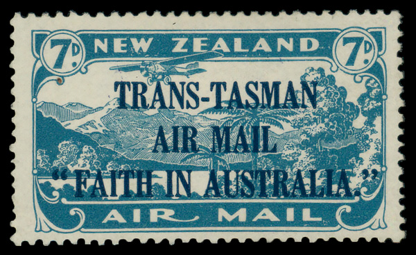 7842 og C5 imageAirmail, 1934, 7d Trans-Tasman Flight (Scott C5), o.g., hinge remnant, Very Fine.