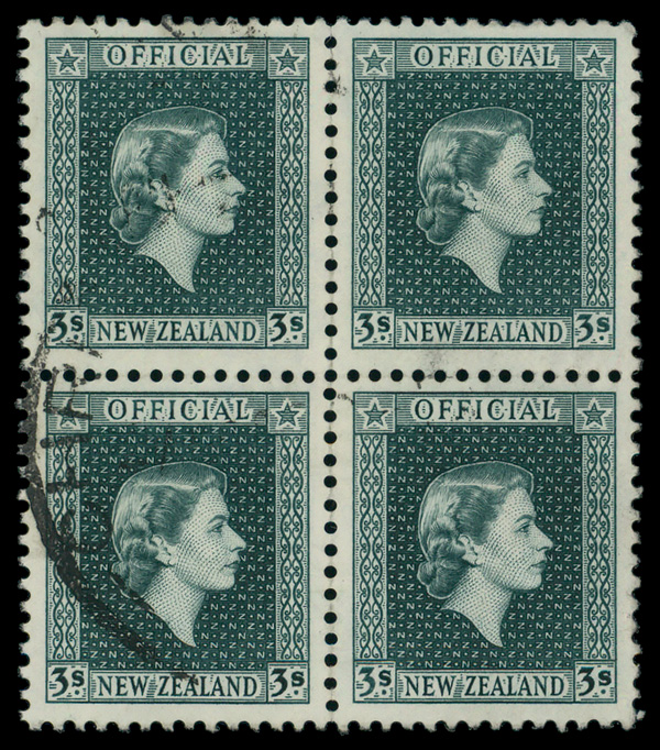 7843 Obl O111 image1963, 3sh Queen Elizabeth II (Scott O111), block of 4, Very Fine.
