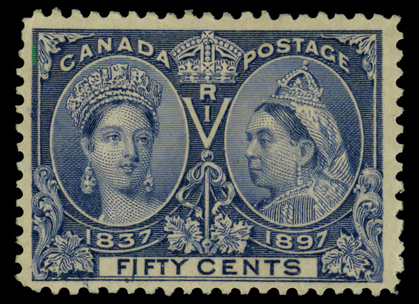 7858 og 60 image1897, Queen Victoria Jubilee, 50¢ ultramarine (Scott 60), o.g., lightly hinged, Fine to Very Fine.