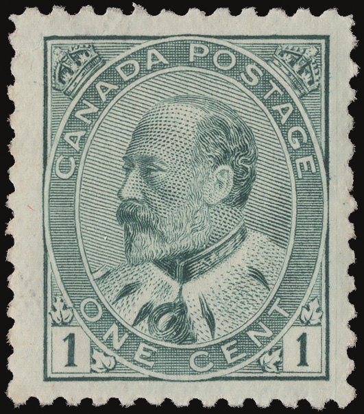 7868 nh 89 image1903, King Edward VII, 1¢ green (Scott 89), an outstanding Jumbo, o.g., never hinged, post office fresh and quite well centered enormous margins, Very Fine.