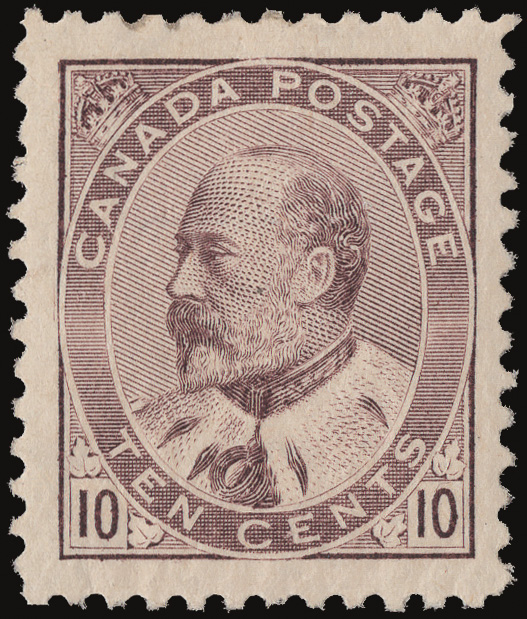 7870 og 93 image1903, King Edward VII, 10¢ brown lilac (Scott 93), an extraordinary mint single, o.g., lightly hinged, wonderfully fresh with large, beautifully balanced margins, Extremely Fine and choice.
